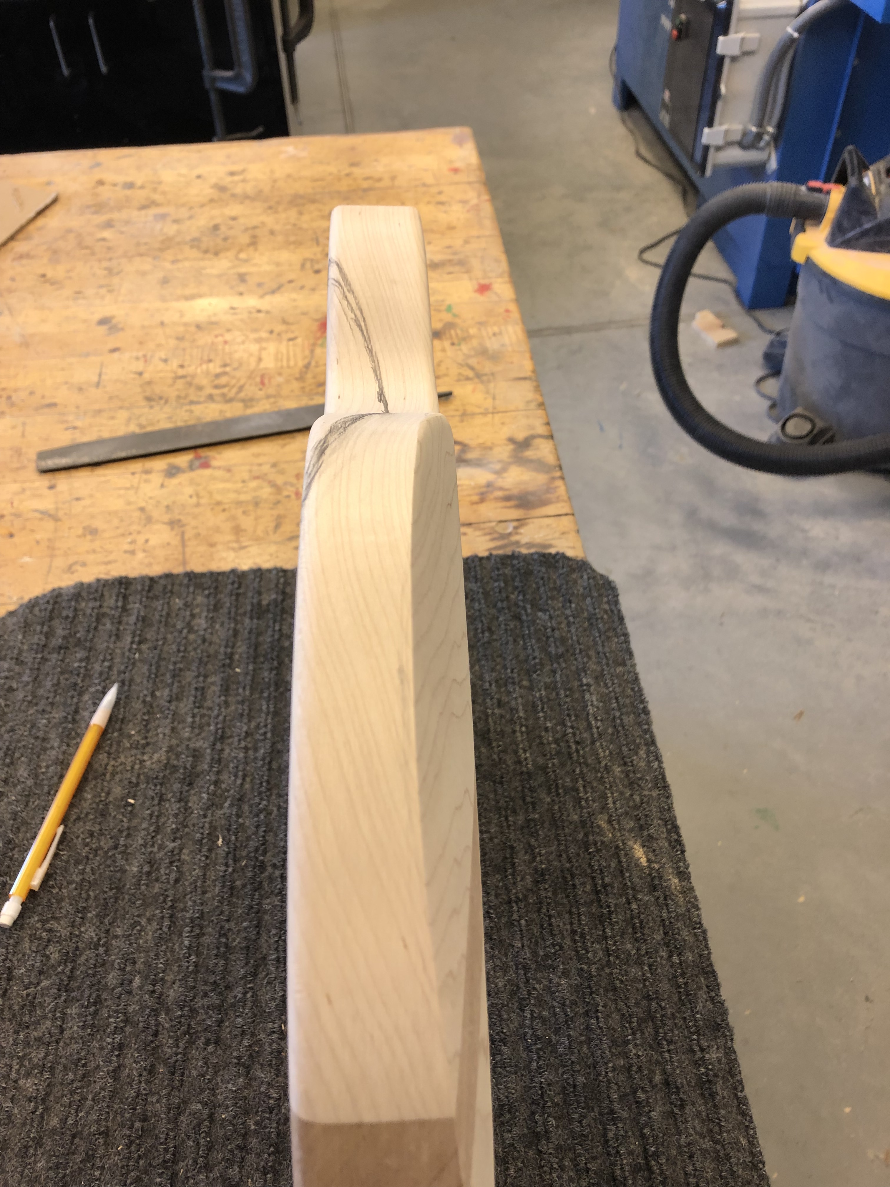 Accomplishments: This week I worked on my arm cut. First I (well Mr. McCormick did) drew out a line that goes with the curve of the body of the guitar as an outline for the shaping process. Using a file, I shaved away the side of the body to until the shaping has been done to the line previously created. Then using a random orbital sander, it sanded away any of the file marks and smoothed out the surface and removed any bumps