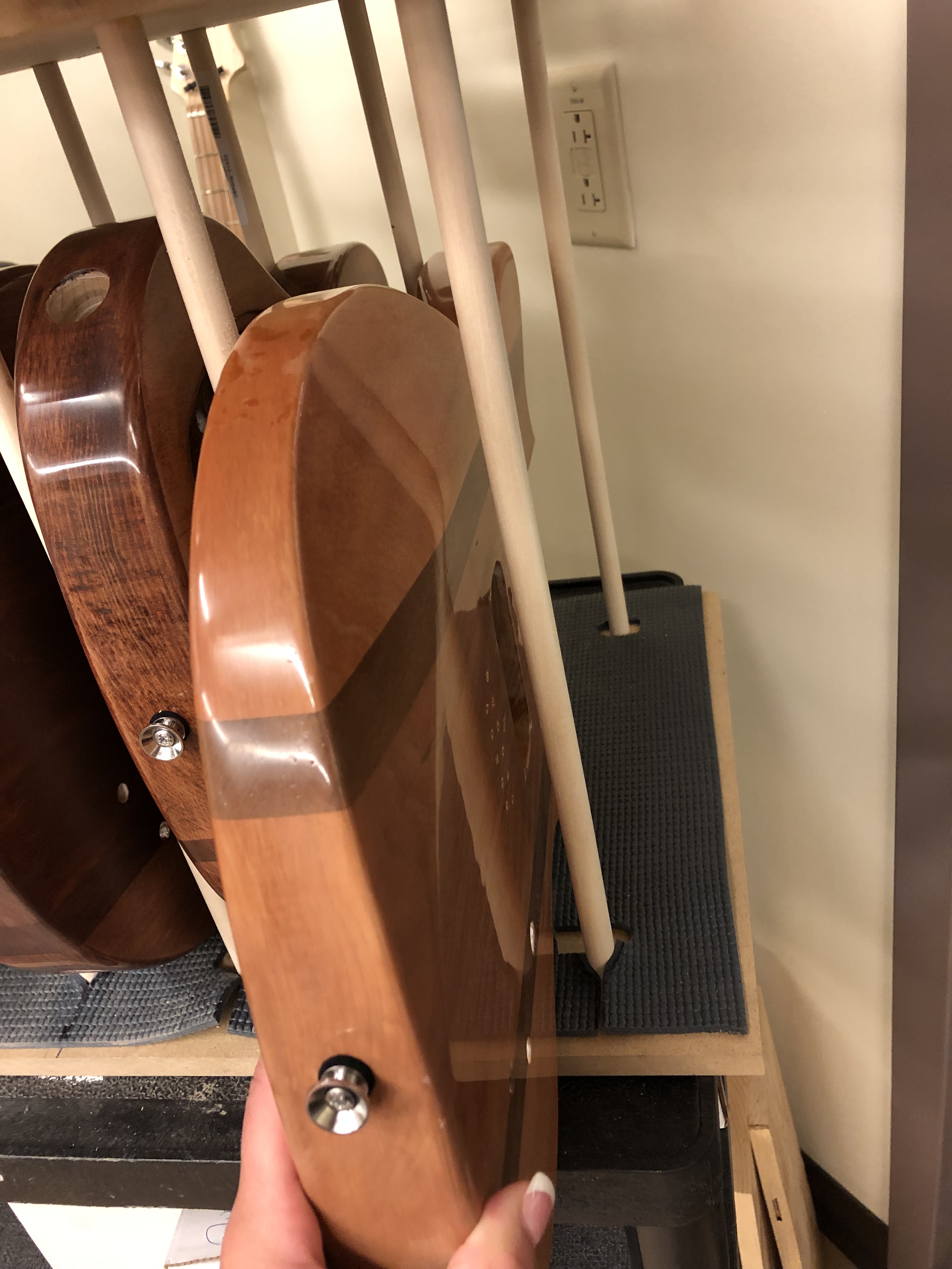 Accomplishments: This week I finished polishing my guitar body and began drilling out the hole where the pickups will be. There was also a little hiccup when my finish began to chip off. Also when Mr. McCormack wasn’t here I tried to put in the strap buttons but then one of the screws got stripped so Dustin gave me his. On the back of the guitar I put in my ferrules
